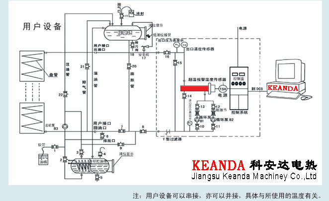 主要功能:導熱油爐系統(tǒng)采用自動控制、自動溫度顯示、恒溫保護、超溫報警。加熱溫度控制在±1℃。并具有多重保護和可靠監(jiān)控裝置、并可與計算機連網(wǎng),實現(xiàn)人機對話。
